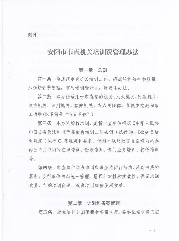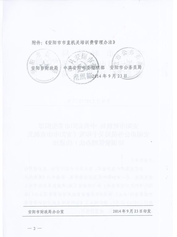 安阳市财政局 中共安阳市委组织部 安阳市公务员局关于印发《安阳市市直机关培训费管理办法》的通知