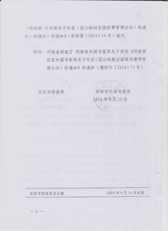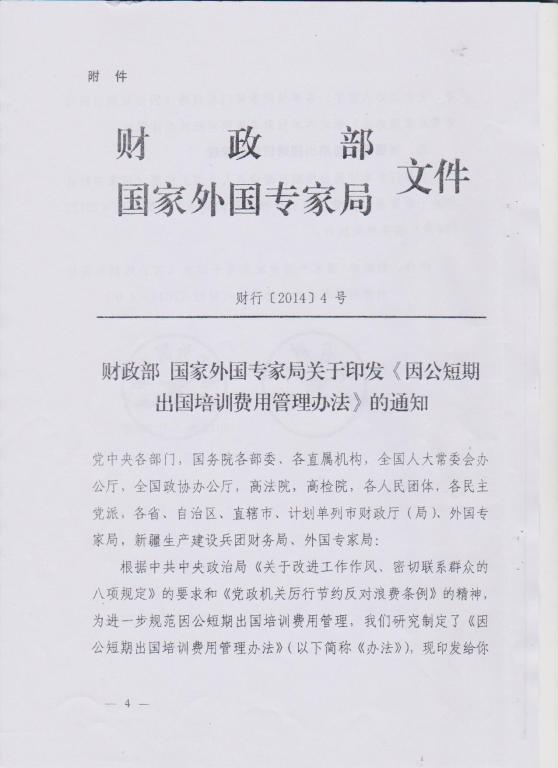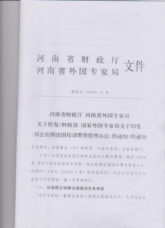 安阳市财政局关于转发《因公短期出国培训费用管理办法》的通知.doc