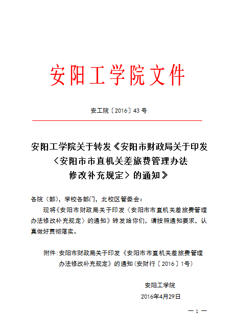 安阳工学院关于转发《安阳市财政局关于印发<安阳市市直机关差旅费管理办法修改补充规定>的通知》