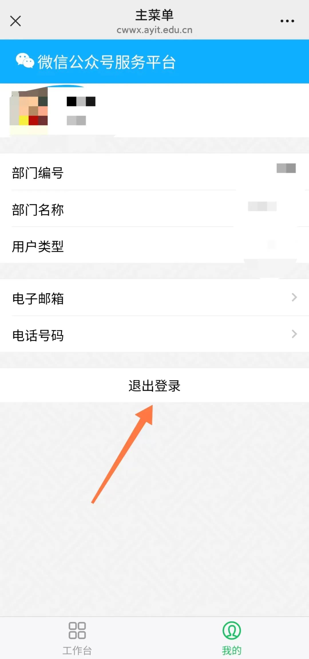 退出登录后,会进入用户登录界面,关闭登录页面即可,然后使用需更换绑定的微信账号,重新进行工号/学号绑定操作即可。
